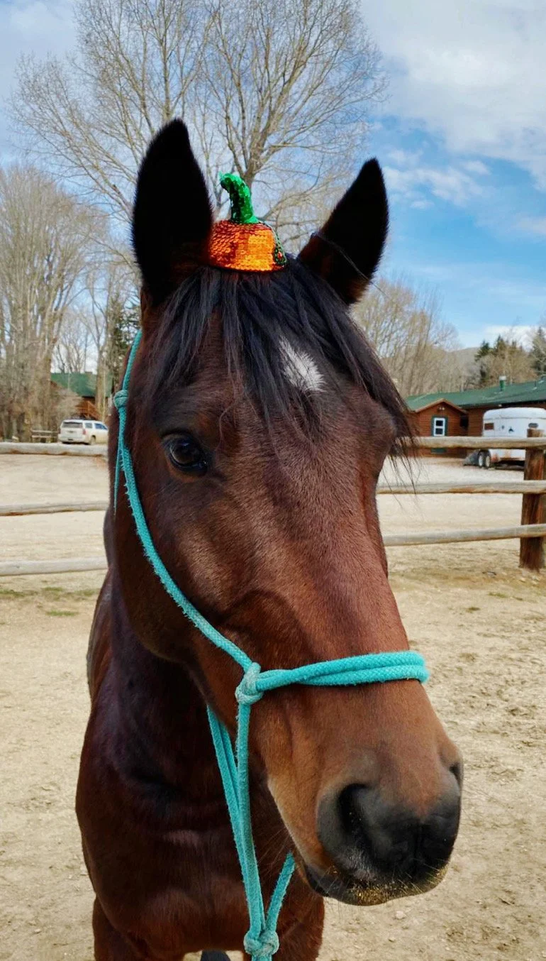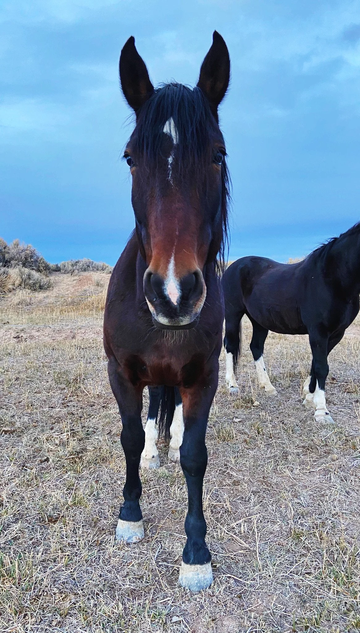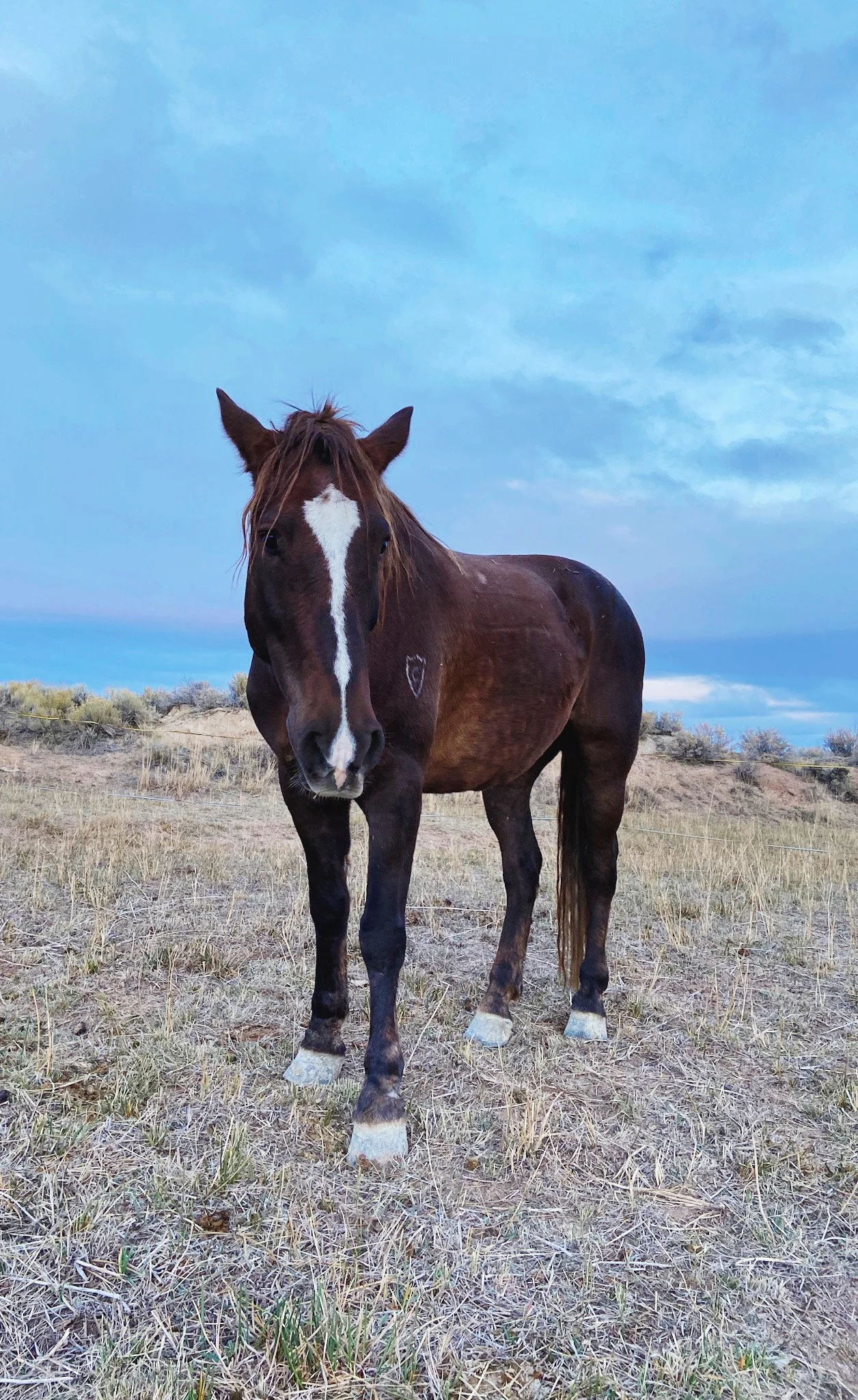 TJ was named by donor Melanie Glenn, after Thelma Johnson, aka wild horse Annie, who was one of the main reasons the wild horse & burro act was passed in 1971. He was my main riding horse for the trip. I have to admit I started out not liking him very much & I gave him the undeserved nickname of “that jerk” - but he quickly proved me wrong by turning out to be an absolutely fantastic riding horse. He has a cute spot on his blaze, and a quirky little sneeze he would do every now & then on the trail. He would also sometimes stop mid-trail to reach past my leg to itch his side!