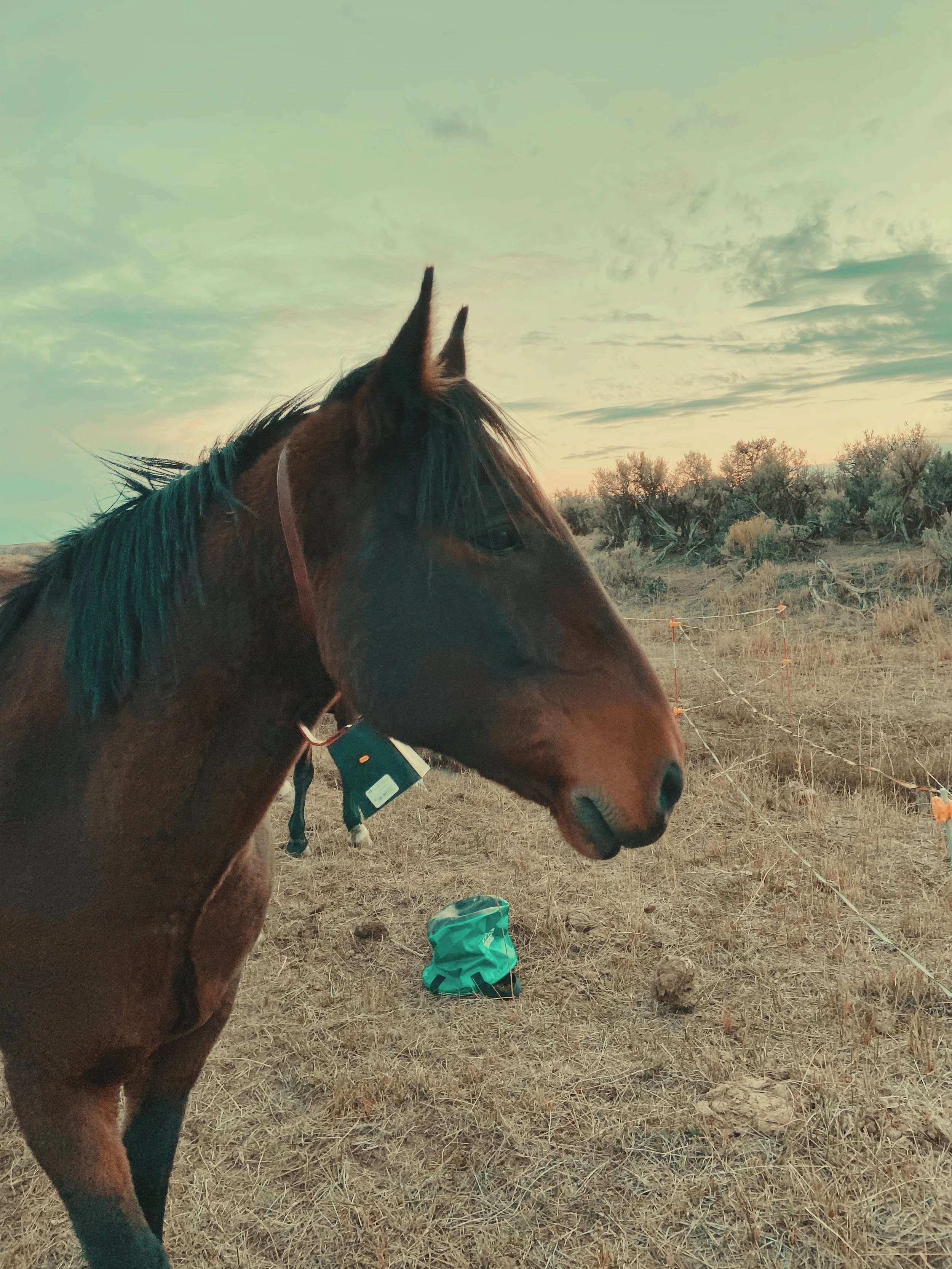 BB gun was leased to us by Camp Cheley out of Estes Park, Colorado, and he was one of our bigger mustangs. He walks out really well, so it was the most fun to ride him when I didn’t have a horse to pony. He’s also one of our fastest horses, and is inseparable from his best friend, Nev. He originally came from an Inmate Training program, hence his name.