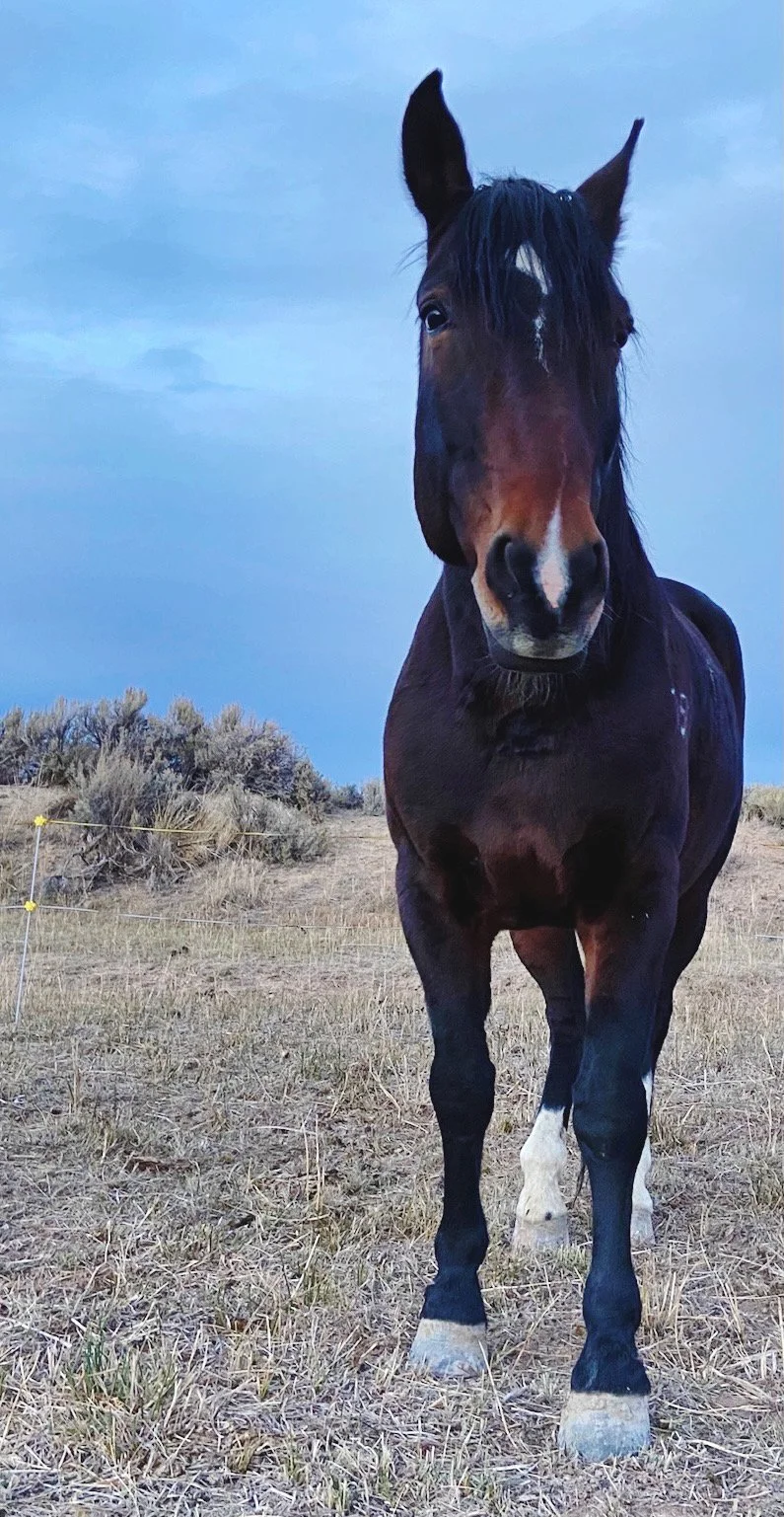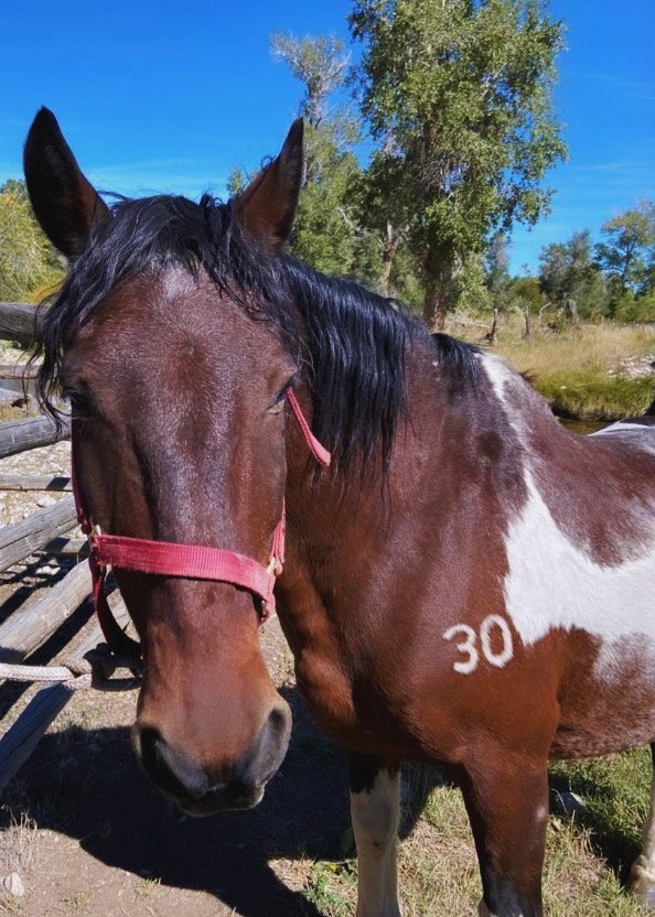 TJ was leased from Yellowstone Horse Rentals and was named by one of our crowdfunding campaign donors. He was named after the infamous Thelma Johnston, a wild horse advocate who helped pass the 1971 Wild and Free Roaming Horses and Burros Act.